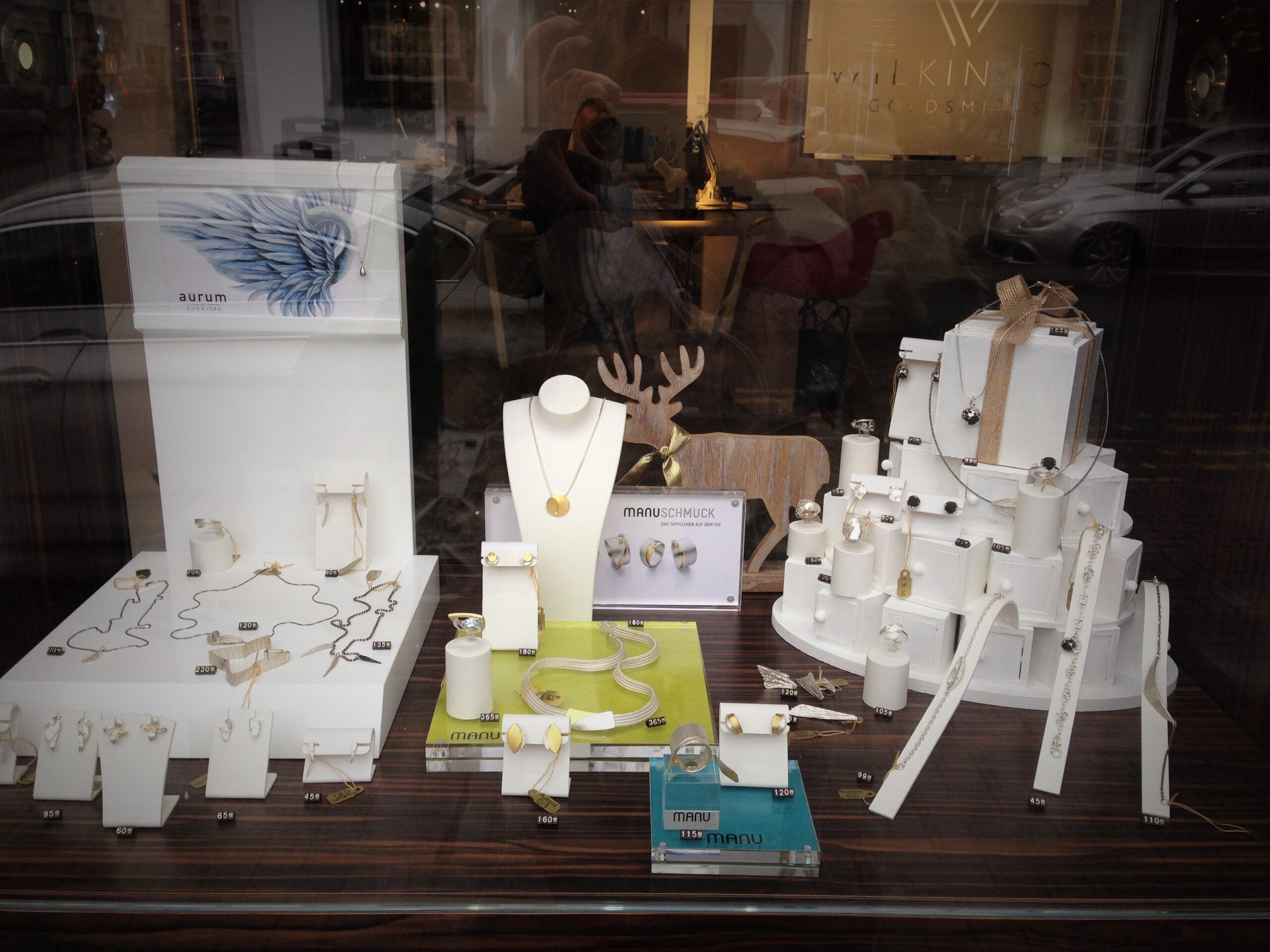 Just in time for the Stoneygate Christmas Market, on Sunday 29 November, we received our Christmas order from Aurum by Gudbjorg and filled our front window with an assortment of pendants, bracelets, earrings and necklaces from the Icelandic jewellery designer.